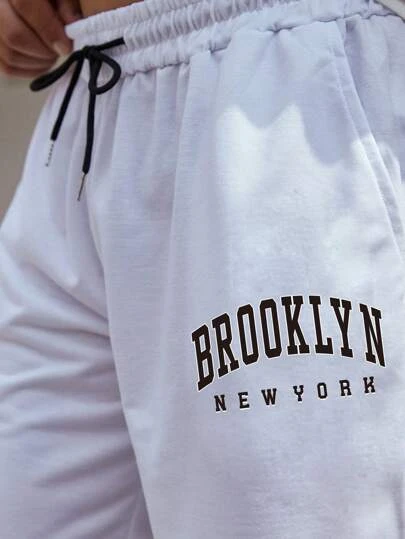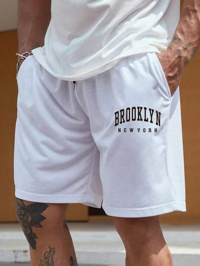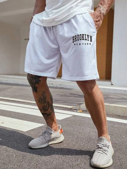 Manfinity Sporsity Men Letter Graphic Drawstring Waist Shorts