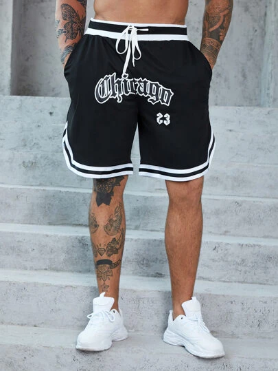 Manfinity Sporsity Men Letter Graphic Drawstring Waist Striped Trim Shorts