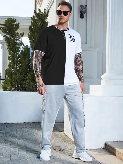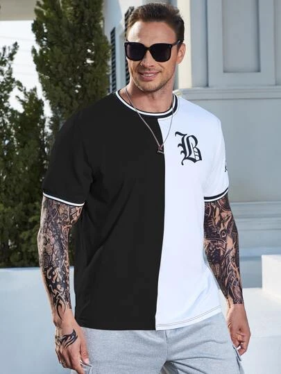 Manfinity Sporsity Men Letter Graphic Two Tone Tee