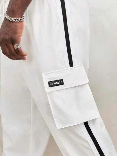 Manfinity Sporsity Men Letter Patched Detail Flap Pocket Side Pants