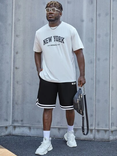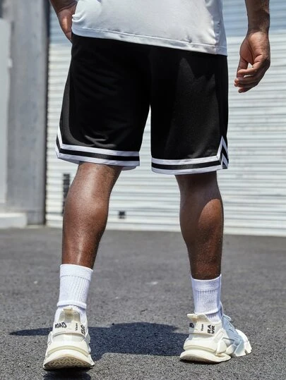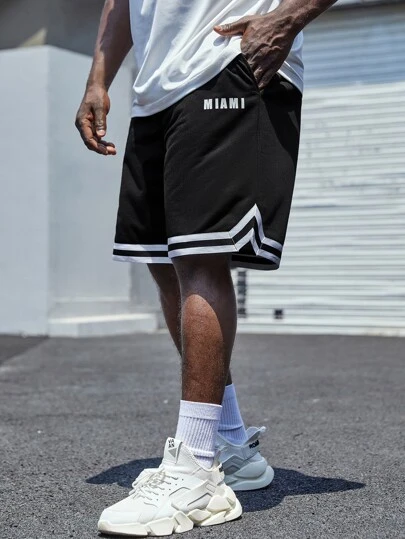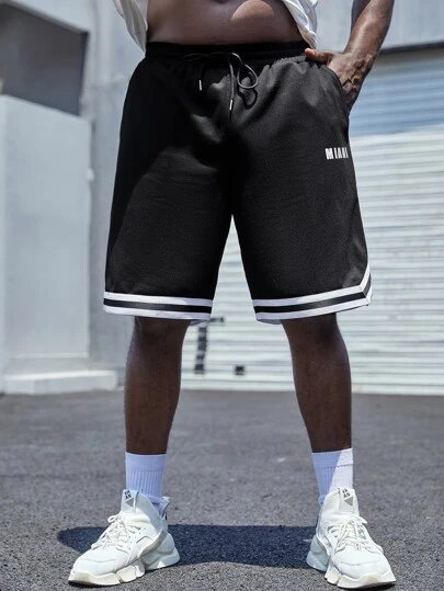 Manfinity Sporsity Men LetterGraphic Striped Trim Shorts