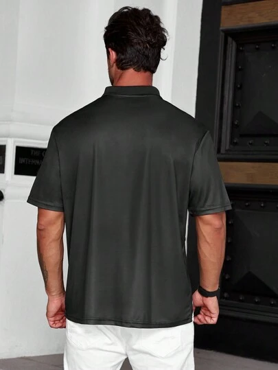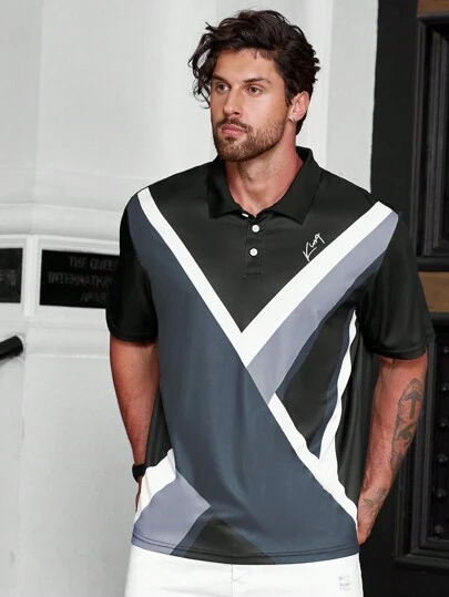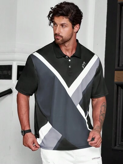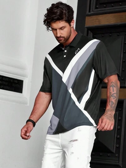 Manfinity Sporsity Men Plus Letter Graphic Colorblock Polo Shirt