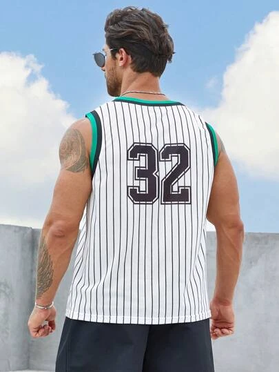 Manfinity Sporsity Men Striped & Letter Graphic Contrast Trim Basketball Jersey