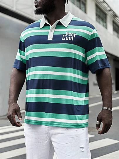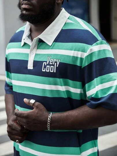 Manfinity Sporsity Men Striped & Letter Graphic Polo Shirt