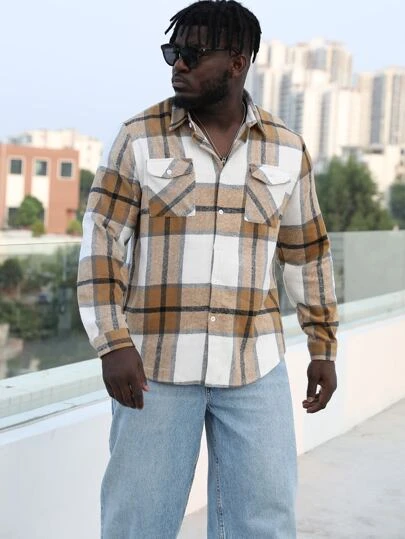 Men 1pc Plaid Print Flap Pocket Shirt
