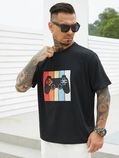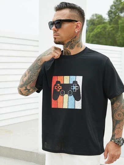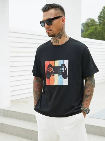 Men Color Block Gamepad Print Tee