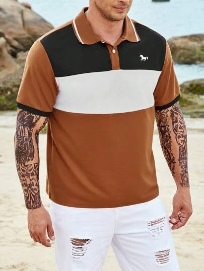 Be the first to review “Men Color Block Horse Print Polo Shirt” Cancel reply
