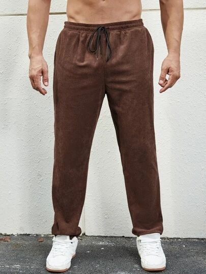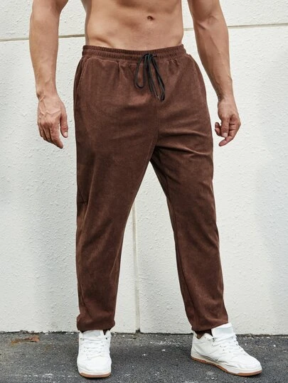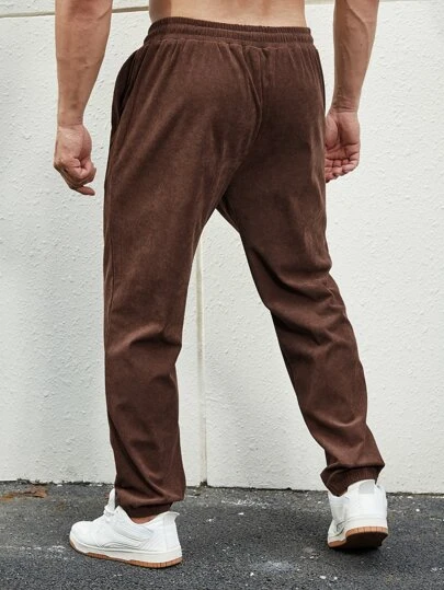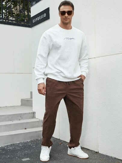 Manfinity Homme Men Letter Embroidery Drawstring Waist Corduroy Pants