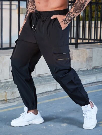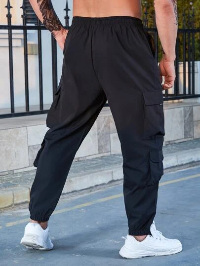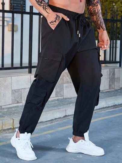 Men Flap Pocket Drawstring Waist Cargo Pants