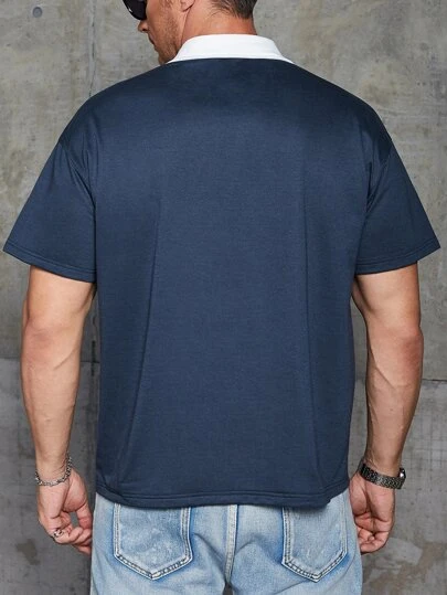 Manfinity Homme Men Letter Embroidery Contrast Trim Polo Shirt