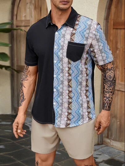 Be the first to review “Men Geo Print Patched Pocket Shirt” Cancel reply