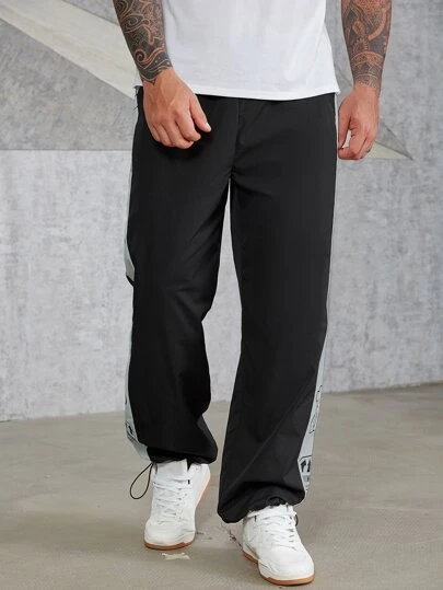 Men Letter Graphic Contrast Sideseam Drawstring Waist Pants
