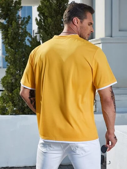 Be the first to review “Men Letter Graphic Contrast Trim Drop Shoulder 2 In 1 Tee” Cancel reply