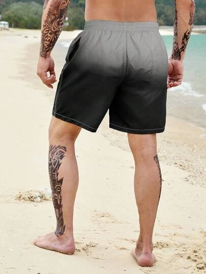 Men Ombre Drawstring Waist Swim Trunks