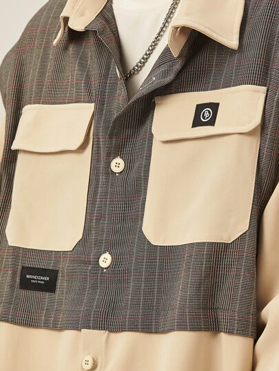 Men Plaid Panel Patch Detail Flap Pocket Shirt Without Tee
