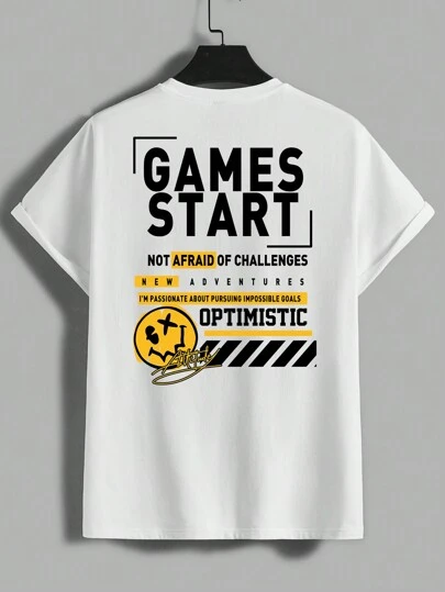 Men Plus Cotton Slogan Graphic Drop Shoulder Tee