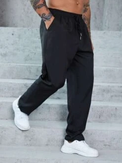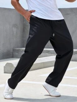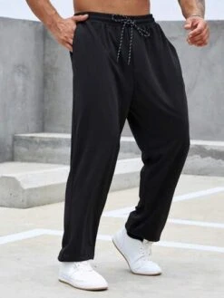 Manfinity Homme Men Solid Drawstring Waist Straight Leg Pants