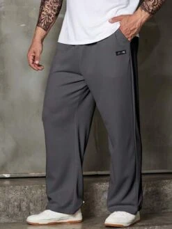 Manfinity Homme Men Letter Patched Detail Drawstring Waist Straight Leg Pants