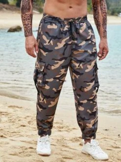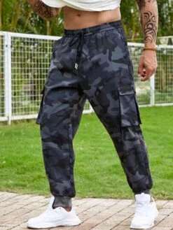 Manfinity LEGND Men Camo Print Flap Pocket Drawstring Waist Cargo Pants