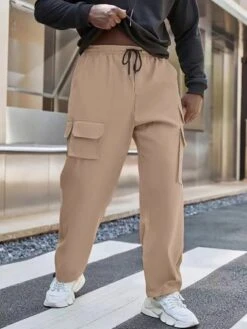Men Camo Print Flap Pocket Side Drawstring Waist Cargo Pants