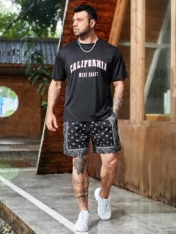 Manfinity LEGND Men Expression Print Drawstring Waist Shorts
