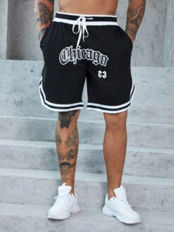 Manfinity Sporsity Men Letter Graphic Drawstring Waist Contrast Tape Shorts