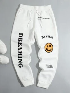 Manfinity EMRG Men Letter & Expression Print Drawstring Waist Sweatpants