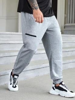 Manfinity Homme Men Solid Slant Pocket Drawstring Waist Sweatpants
