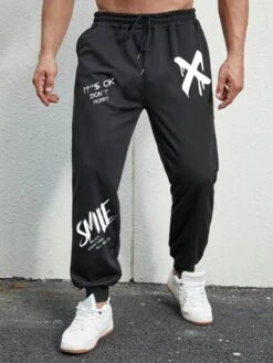 Manfinity Homme Men Slogan Graphic Drawstring Waist Sweatpants