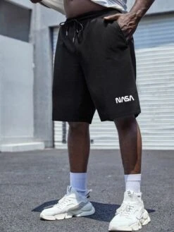 Manfinity EMRG Men Plus Letter Graphic Contrast Trim Drawstring Waist Shorts