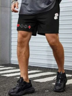 Manfinity Hypemode Men Playing Card Print Drawstring Waist Shorts