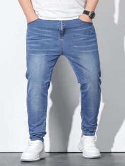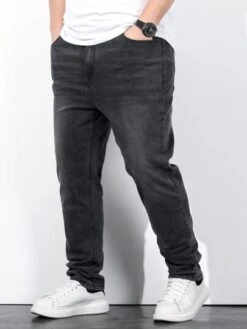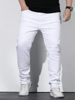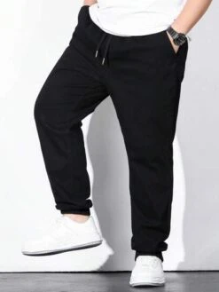 Manfinity Homme Men Cotton Solid Drawstring Waist Straight Leg Jeans
