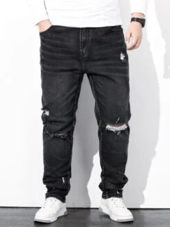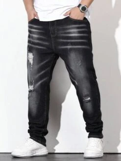Manfinity LEGND Men Cotton Ripped Frayed Cat Scratch Washed Jeans