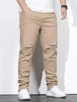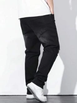 Manfinity LEGND Men Cotton Ripped Frayed Cat Scratch Straight Leg Jeans