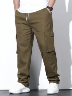 Manfinity LEGND Men Cotton Flap Pocket Side Drawstring Waist Cargo Pants