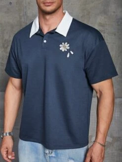Manfinity Sporsity Men Letter Graphic Contrast Collar Polo Shirt
