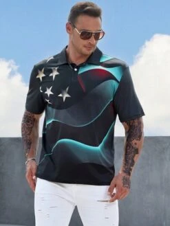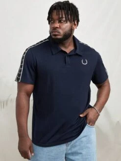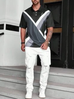 Manfinity Sporsity Men Plus Letter Graphic Colorblock Polo Shirt