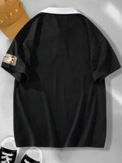 Manfinity Sporsity Men Letter Graphic Contrast Collar Drop Shoulder Polo Shirt