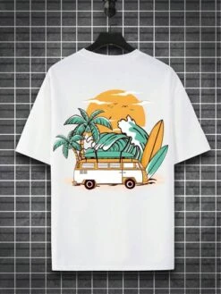 Manfinity Chillmode Men Car & Palm Tree Print Drop Shoulder Tee