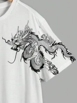 SHEIN Manfinity LEGND Men Plus Japanese Letter & Dragon Graphic Tee