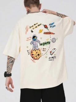 Manfinity EMRG Men Slogan & Astronaut Print Drop Shoulder Tee