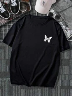 Manfinity EMRG Men Slogan & Butterfly Print Drop Shoulder Tee