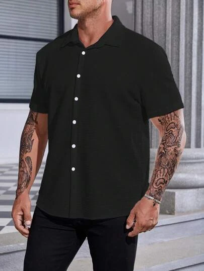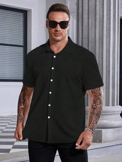 Men Plus Solid Button Up Shirt