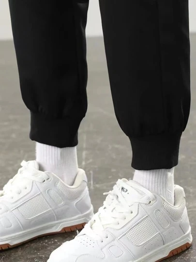 Manfinity Homme Men Letter Patched Detail Drawstring Waist Straight Leg Pants