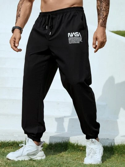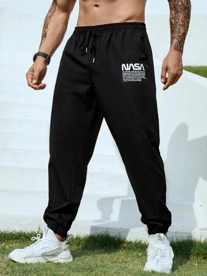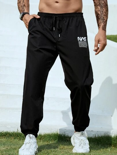 Men Slogan Graphic Drawstring Waist Pants