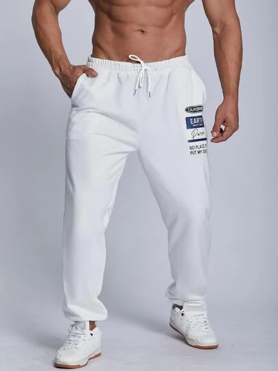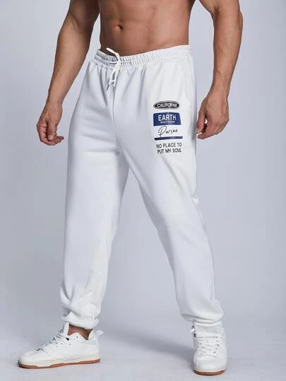 Manfinity Homme Men Slogan Patched Drawstring Waist Sweatpants