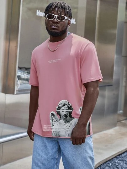 Men Slogan & Statue Print Tee