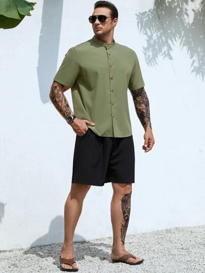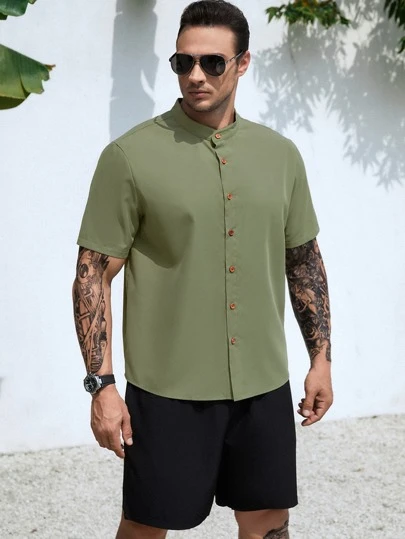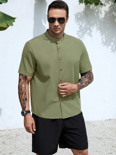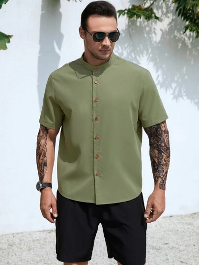 Men Solid Button Up Shirt