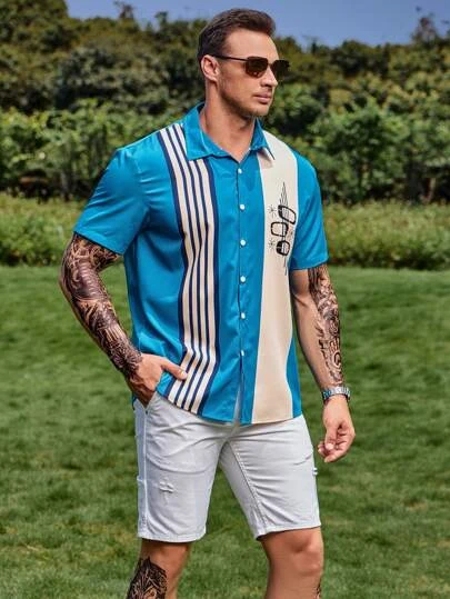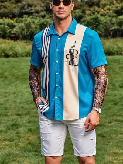 Men Striped & Geo Graphic Shirt