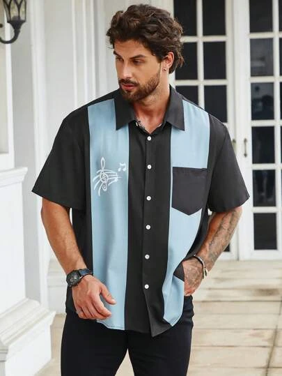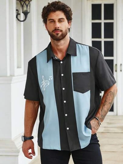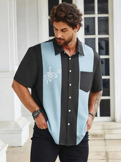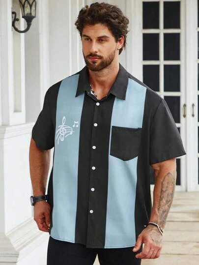 SHEIN Manfinity Homme Men Plus Colorblock Pocket Front Shirt